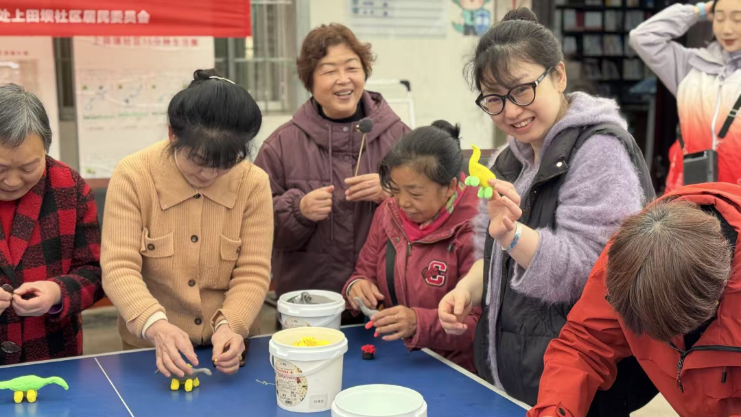 在充满趣味的恐龙黏土DIY环节,大人和小孩齐动手,发挥想象力创作出各具特色的专属恐龙,邻里间交流制作心得,场面温馨融洽,在动手实践中拉近了彼此距离。