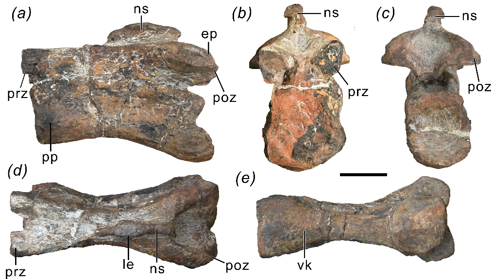 图2 祥云龙的中后部颈椎,比例尺为10厘米